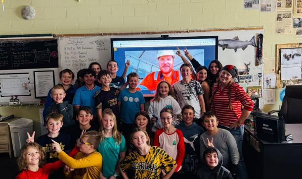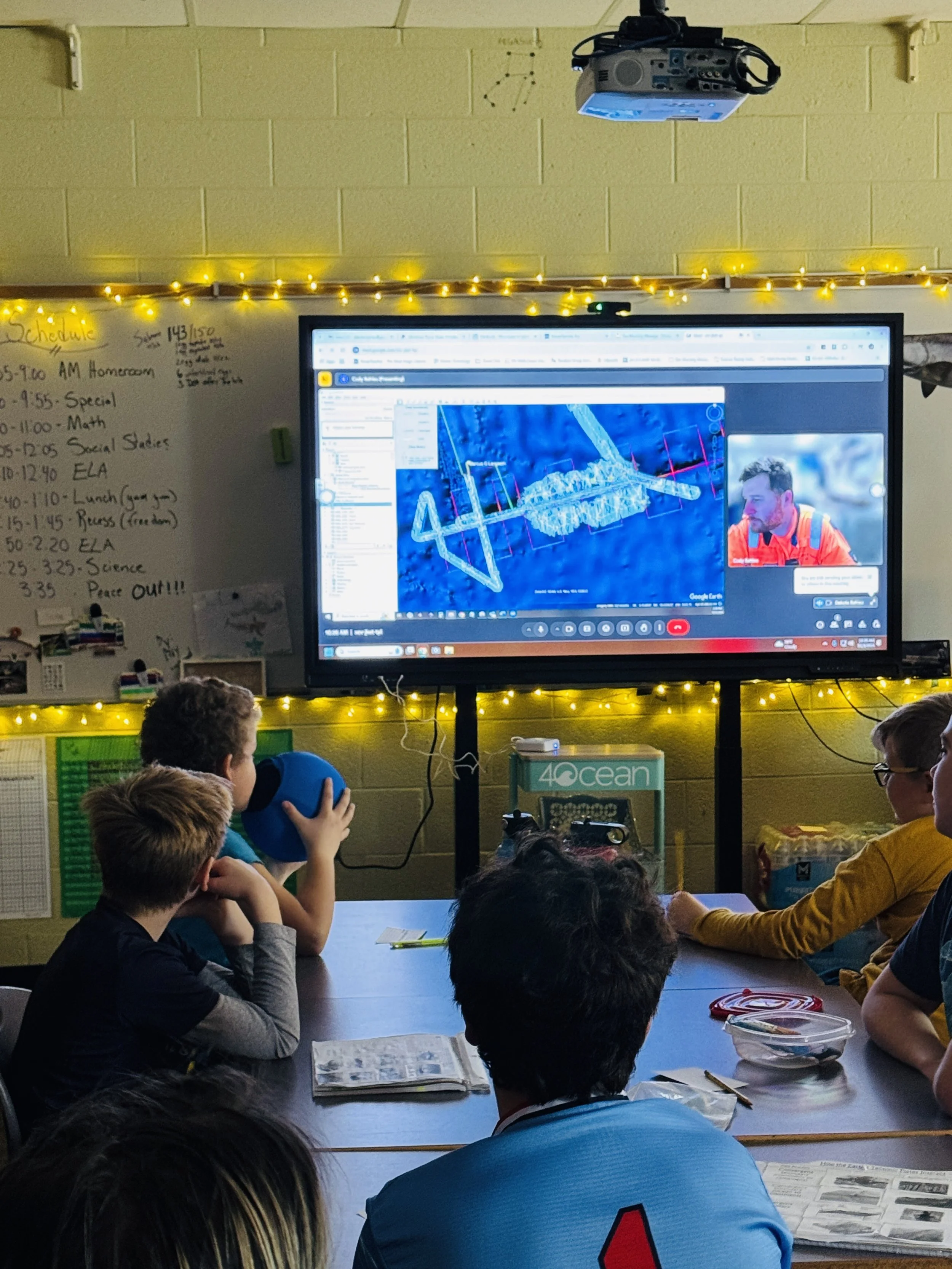 The idea for the program developed naturally. During classroom visits to Dakota’s school, Cody recognized an opportunity to bring his work at sea into the classroom in a more immediate and interactive way. Inspired in part by outreach models like Exploring by the Seat of Your Pants and National Geographic’s Explorer Classroom, the pair created a livestream-based program tailored specifically for one-on-one engagement with Dakota’s students. The goal was to address a common gap in science education: limited exposure to real-world STEM professionals and hands-on field research, especially in ocean exploration. Together, they aimed to boost STEM visibility, spark curiosity, and provide real-world context to Earth science and environmental systems. After a successful launch in Dakota’s class (Image 1), they expanded the program to additional classrooms.