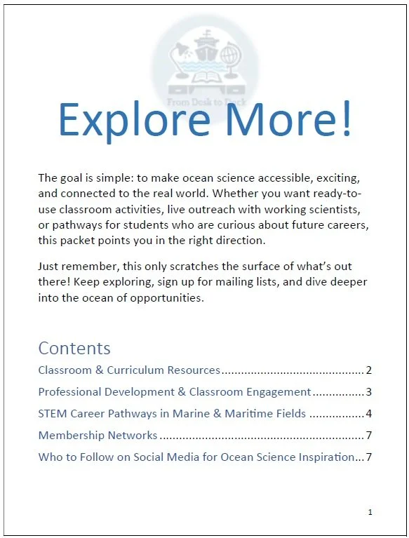 Supporting materials, short clips, and teacher resources that extend the experience beyond the call. Designed to spark curiosity and help students explore ocean science at their own pace.